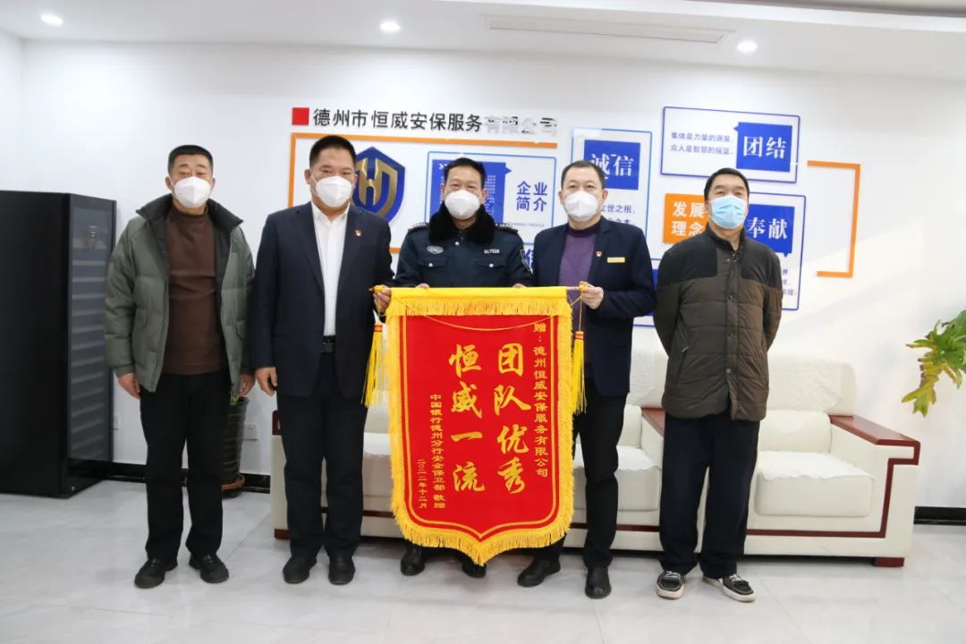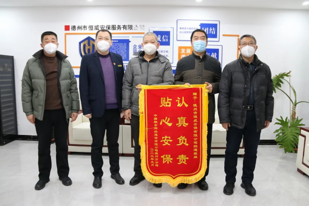 將寫有“團隊優良 恒威一流”“認真負責 貼心安保”的錦旗交予恒威安保手中,感謝恒威安保人在工作中履職盡責、踏實勤懇、真誠細心,特別是疫情防控期間,不畏時艱、任勞任怨堅守工作崗位,為公司有序、健康、穩定運轉貢獻了堅實力量。
