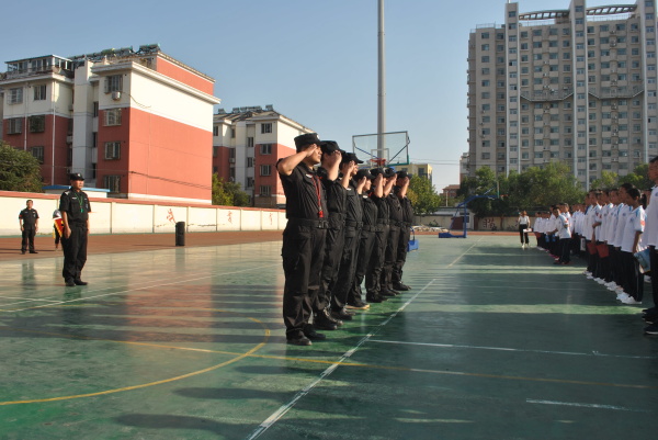 德州市恒威安保服務有限公司受邀對德州市七中、十一中、十五中、黃河涯四所中學兩千余名入學新生進行軍事培訓。自9月1日起為期6-8天。為此公司總經理王新衛召開動員大會,抽調人防二大隊、一大隊、三大隊、機關職能部門、技防、犬防、物業共計三十余名軍事教官,以《中學生軍事訓練教學大綱》為依據,以中國人民解放軍三大條令訓練為主要內容,制訂了切實可行的訓練方案。