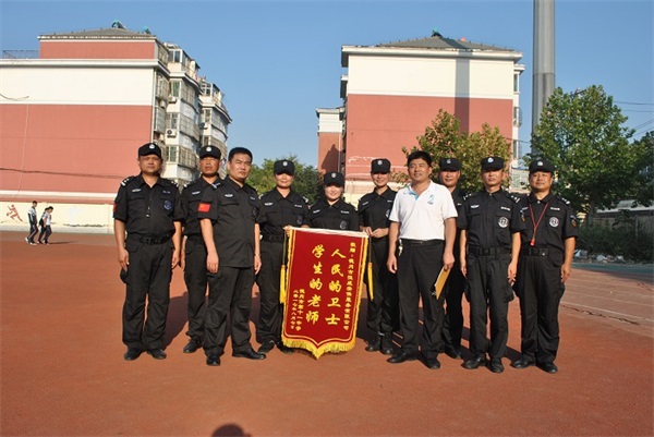 期間,教官們的嗓子喊啞了,學生們的腿累酸了、臉曬黑了,但很少有人掉隊和叫苦叫累。公司副總經理、人防二大隊大隊長王洪林多次到軍訓學校看望慰問軍訓教官。并受邀參加了十一中、七中的軍訓成果展示點驗活動。十一中校長親自向公司贈送了“人民的衛士,學生的老師”錦旗一面,感謝公司的鼎力協助和教官們的辛勤付出。并對公司軍訓教官過硬的軍事素質給予高度的評價。