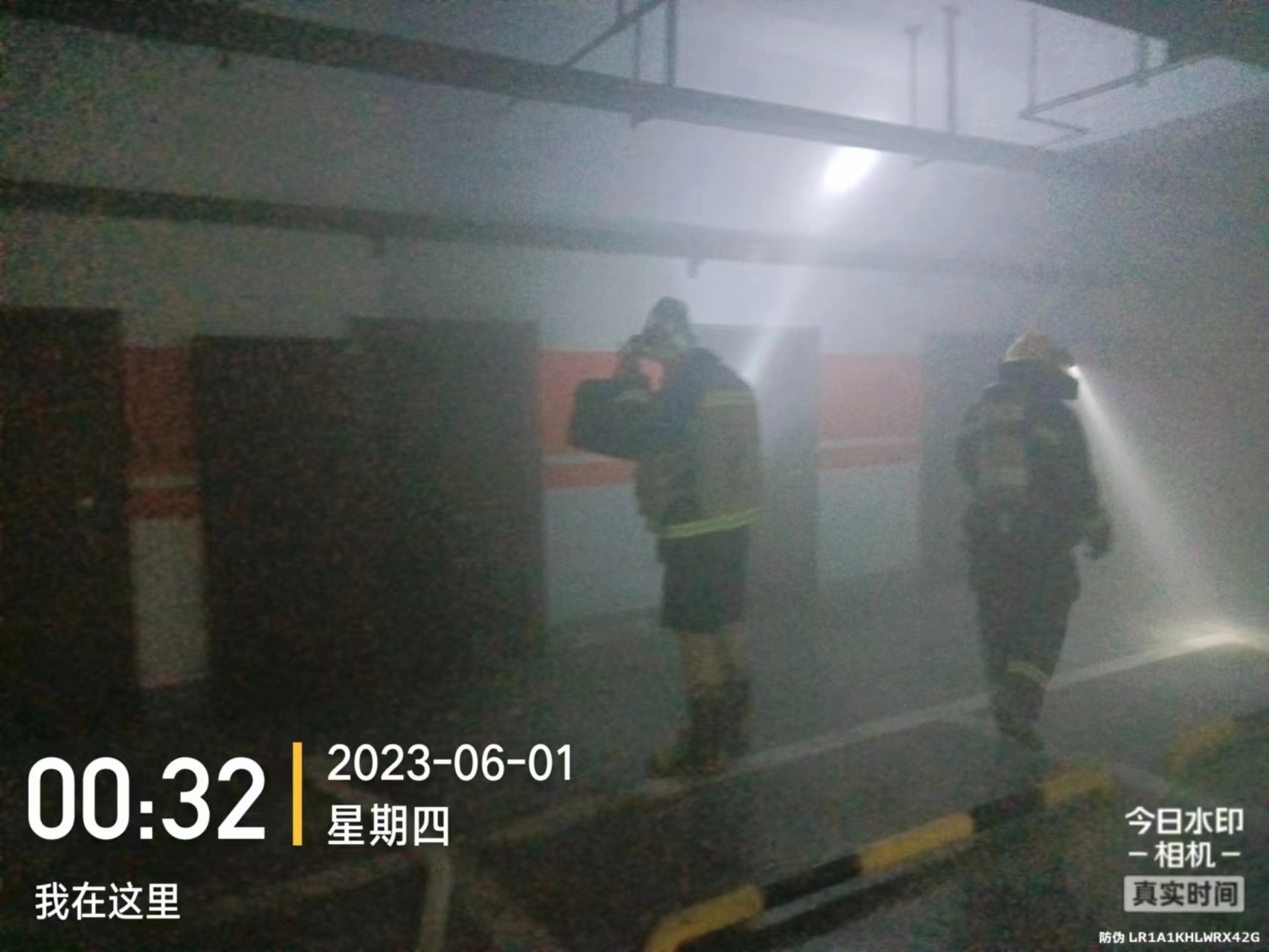 5月31日23點(diǎn)47分,星凱小區(qū)消防監(jiān)控中心火災(zāi)報(bào)警主機(jī)接到二期13號(hào)樓車(chē)庫(kù)儲(chǔ)藏間C1316火災(zāi)探測(cè)器報(bào)火警,值班員崔會(huì)林、于士峰第一時(shí)間用對(duì)講機(jī)呼叫巡邏崗張士剛,告知其立即到前往查看,張士剛發(fā)現(xiàn)C1316儲(chǔ)藏間冒出濃煙并伴有燒焦味道,立刻將情況上報(bào)消防監(jiān)控中心,中隊(duì)長(zhǎng)艾勇峰立即啟動(dòng)消防應(yīng)急預(yù)案、撥打119火警電話并向單位領(lǐng)導(dǎo)匯報(bào),隨即帶領(lǐng)4名安保人員攜帶滅火器、防煙面具等消防設(shè)備趕往火災(zāi)現(xiàn)場(chǎng),第一時(shí)間切斷該儲(chǔ)藏間電源并通知附近車(chē)位業(yè)主轉(zhuǎn)移車(chē)輛,隨即打開(kāi)儲(chǔ)藏室,佩戴防煙面具進(jìn)入,用滅火器、水進(jìn)行滅火,待到消防人員趕到時(shí),明火已滅,火情得到控制,后經(jīng)消防隊(duì)員現(xiàn)場(chǎng)確認(rèn),火災(zāi)警情解除,但按消防要求設(shè)置觀察崗值班兩小時(shí)防止火災(zāi)復(fù)燃。