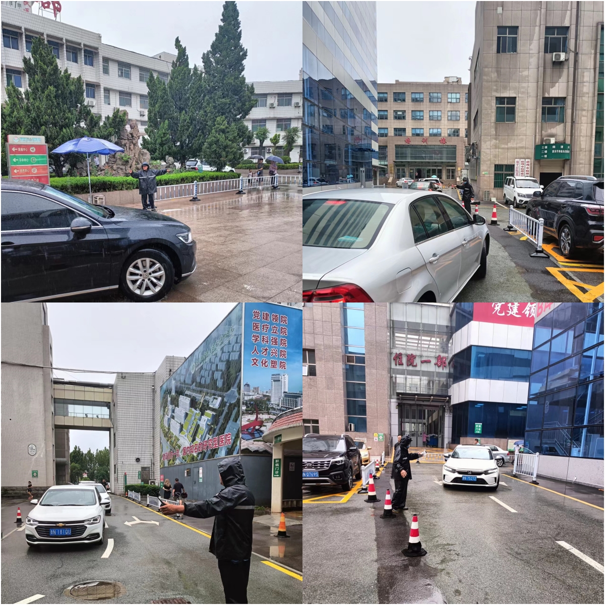 因連日降雨,大酒店停車場場地積水泥濘無法停車,就診車輛全部涌入人民醫院內,停車場工作壓力驟增,930個立體車庫車位、280個地面車位全天候不間斷循環停車,僅7月30日一天,就達到歷史最高峰八千余車次,面對空前壓力,隊員們始終冒雨指揮車輛,堅守崗位、盡職盡責,確保就診車輛有序停放,受到院方充分肯定和贊揚。