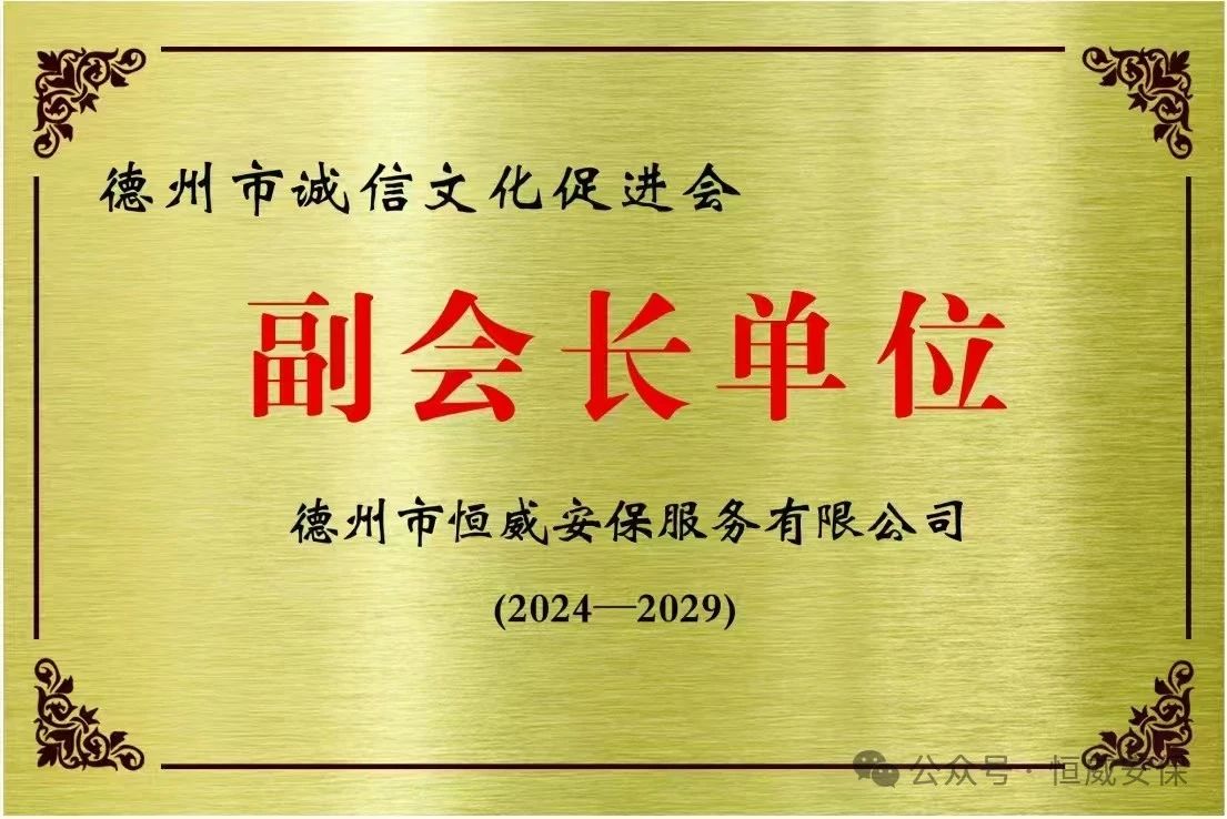 近日,德州市恒威安保服務有限公司正式當選為德州市誠信文化促進會副會長單位,這一榮譽不僅彰顯了恒威安保在誠信建設方面的卓越成就,也為其未來的發展注入了新的動力。